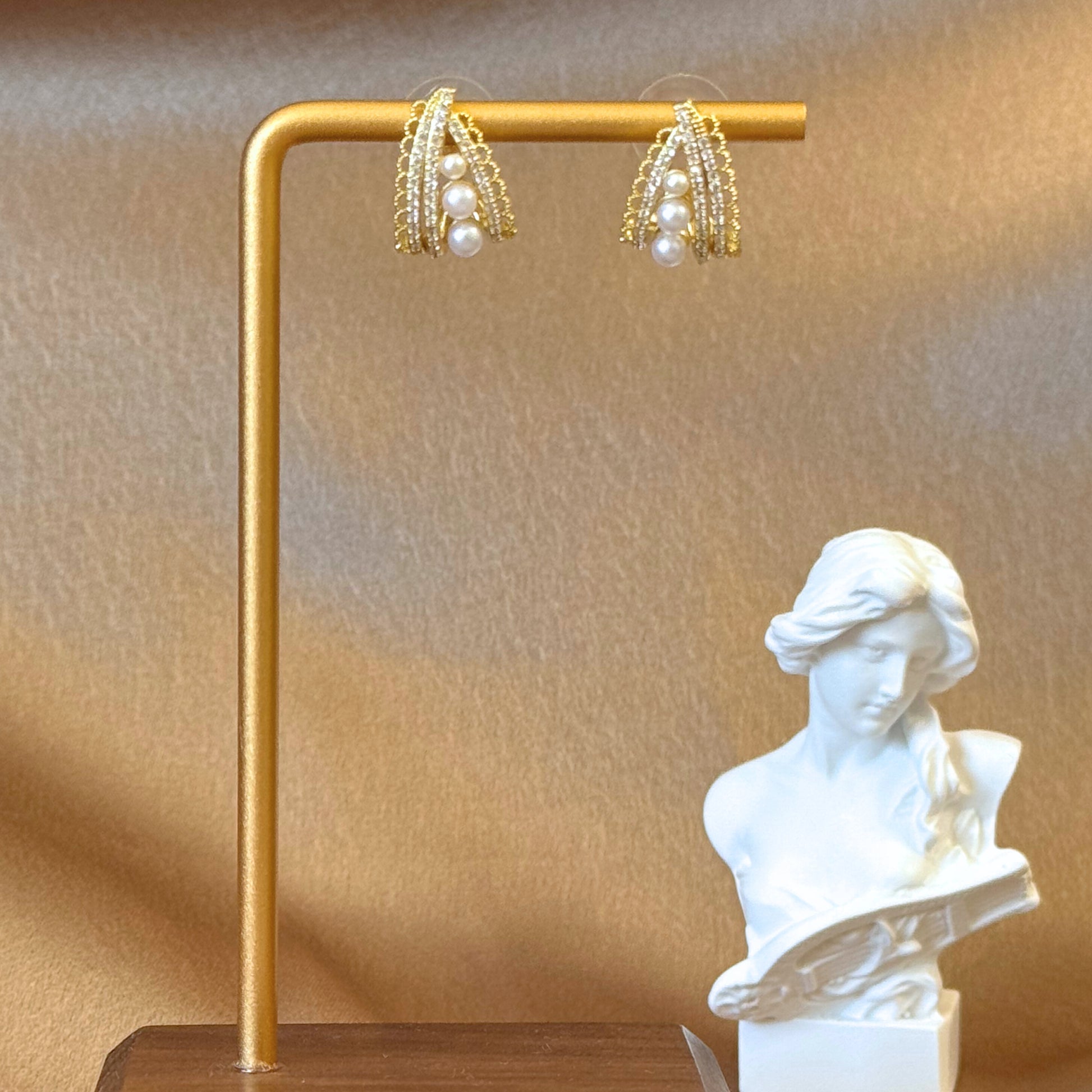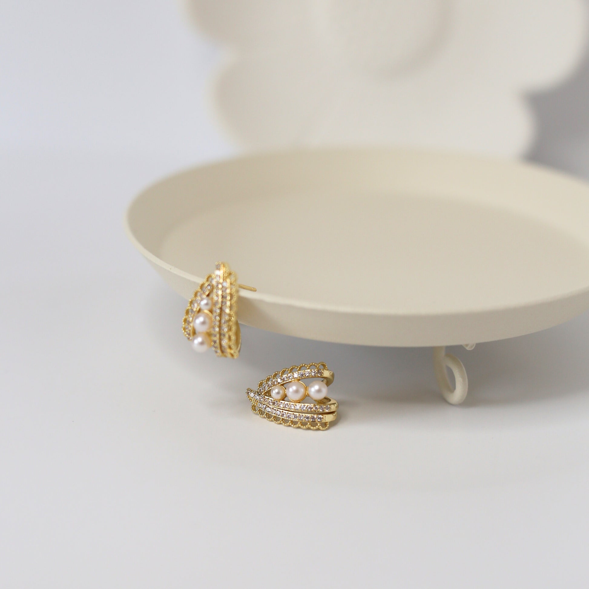 Modern and chic, these earrings feature radiant imitation pearls in a sleek design that catches the eye. Bold yet elegant, they’re the perfect statement piece for a fashion-forward look.