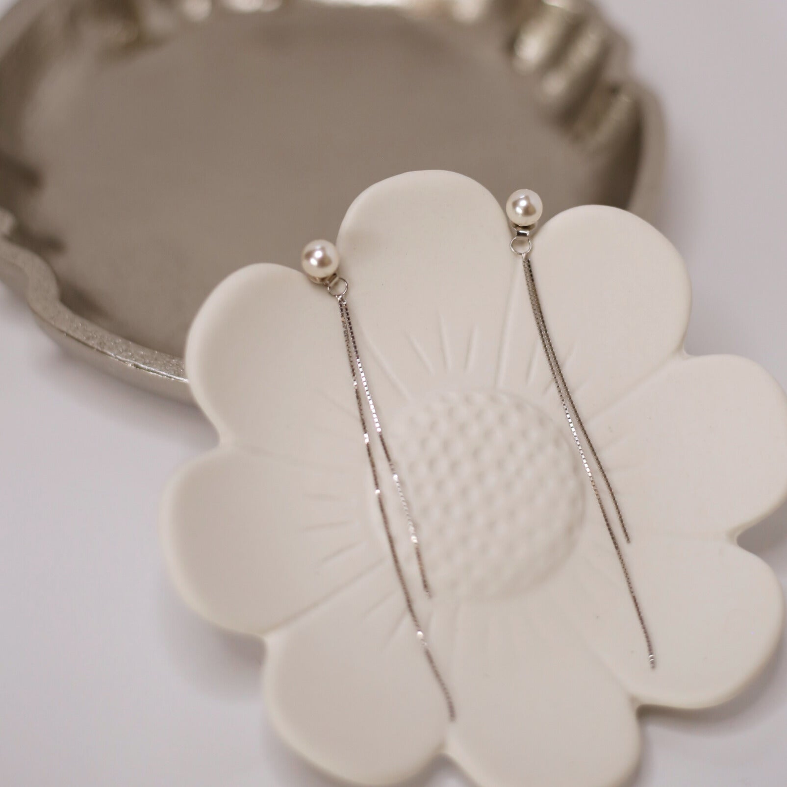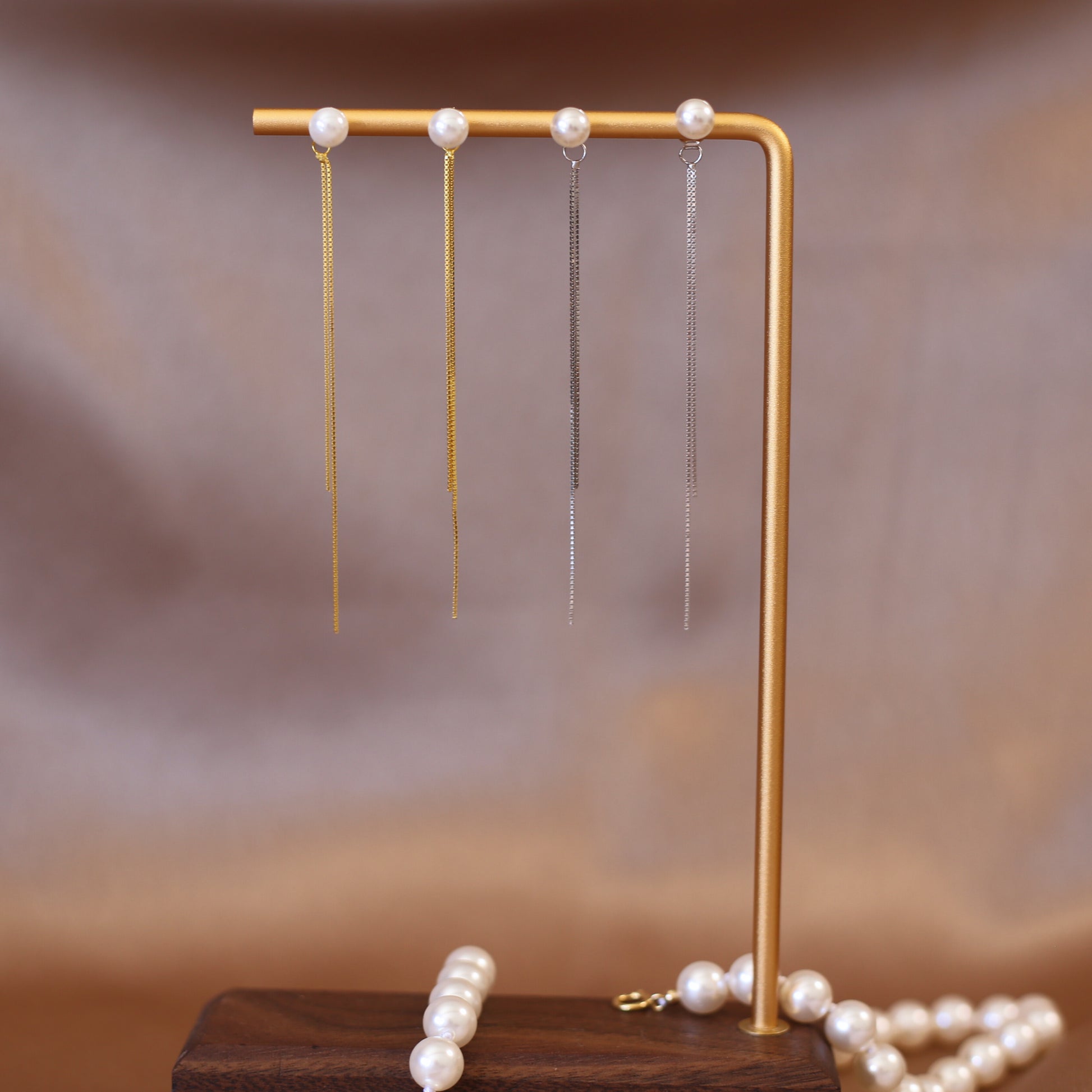 Modern and chic, these earrings feature radiant imitation pearls in a sleek design that catches the eye. Bold yet elegant, they’re the perfect statement piece for a fashion-forward look.