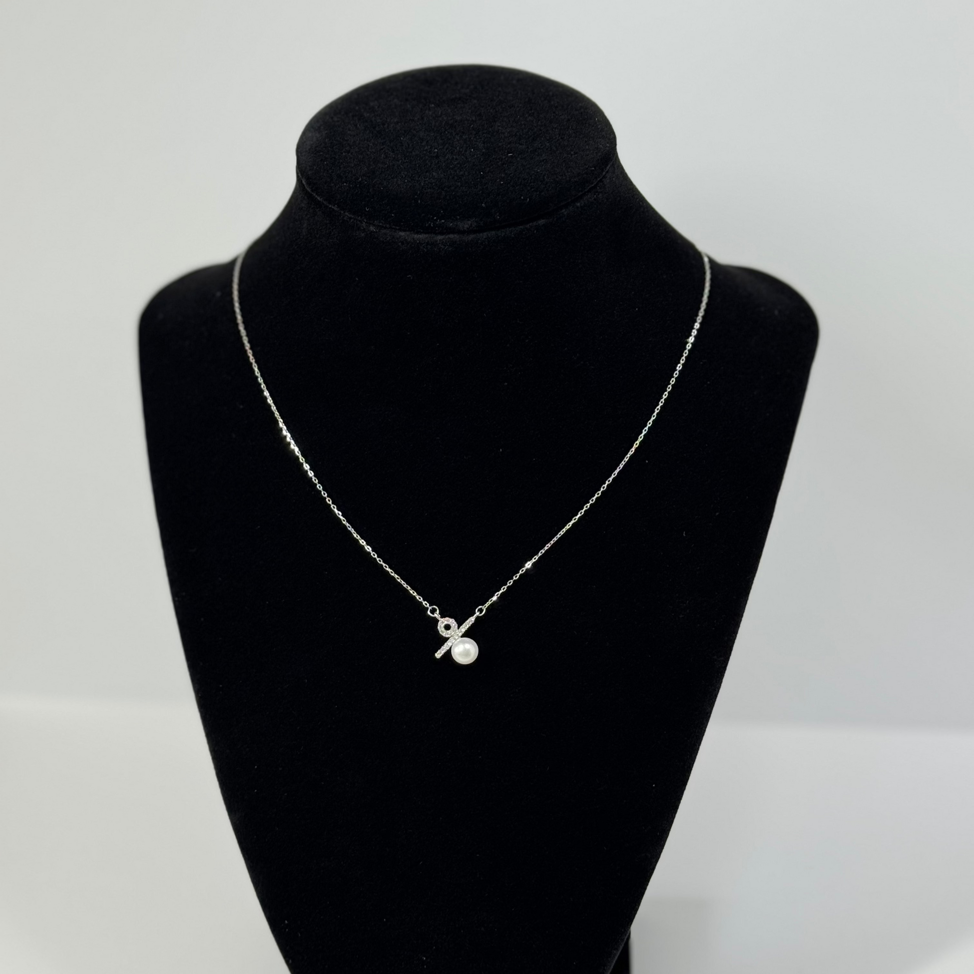 A unique, percentage-inspired design featuring a delicate zirconia-studded loop paired with a smooth freshwater pearl. Modern, minimal, and effortlessly chic.