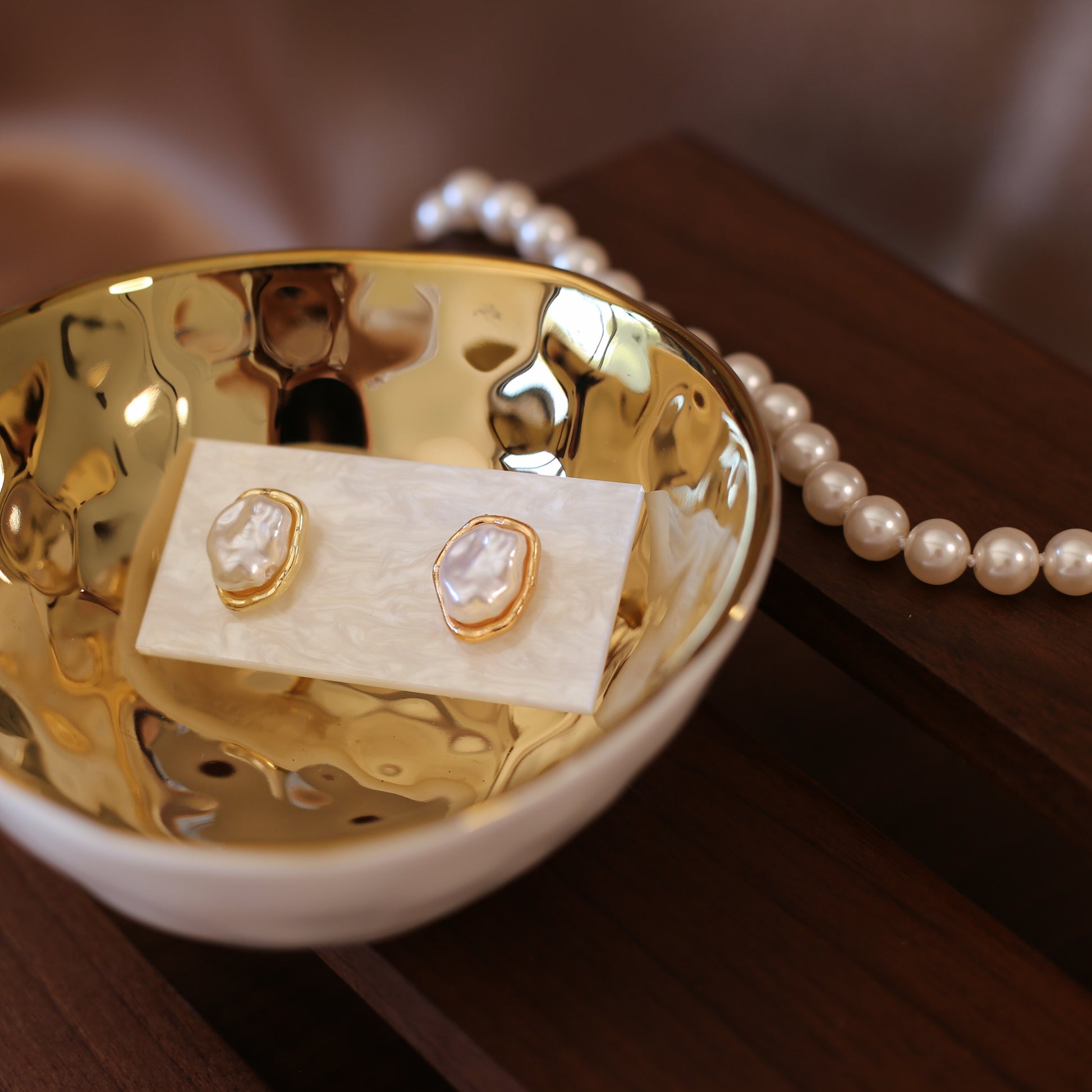 Modern and chic, these earrings feature radiant imitation pearls in a sleek design that catches the eye. Bold yet elegant, they’re the perfect statement piece for a fashion-forward look.